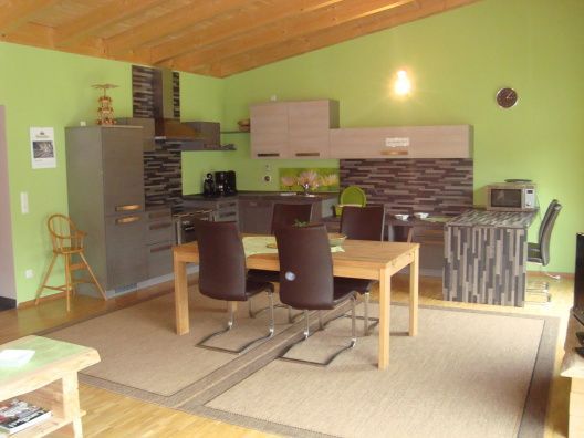 The house was built with the solid wood wall - is purely ecological and without chemical treatment. The wood for the outside and inside walls was supplied by our own sawmill, the solid wood furniture was made by the carpenter and partly by ourselves. The house and the holiday home are heated with a wood chip heater.