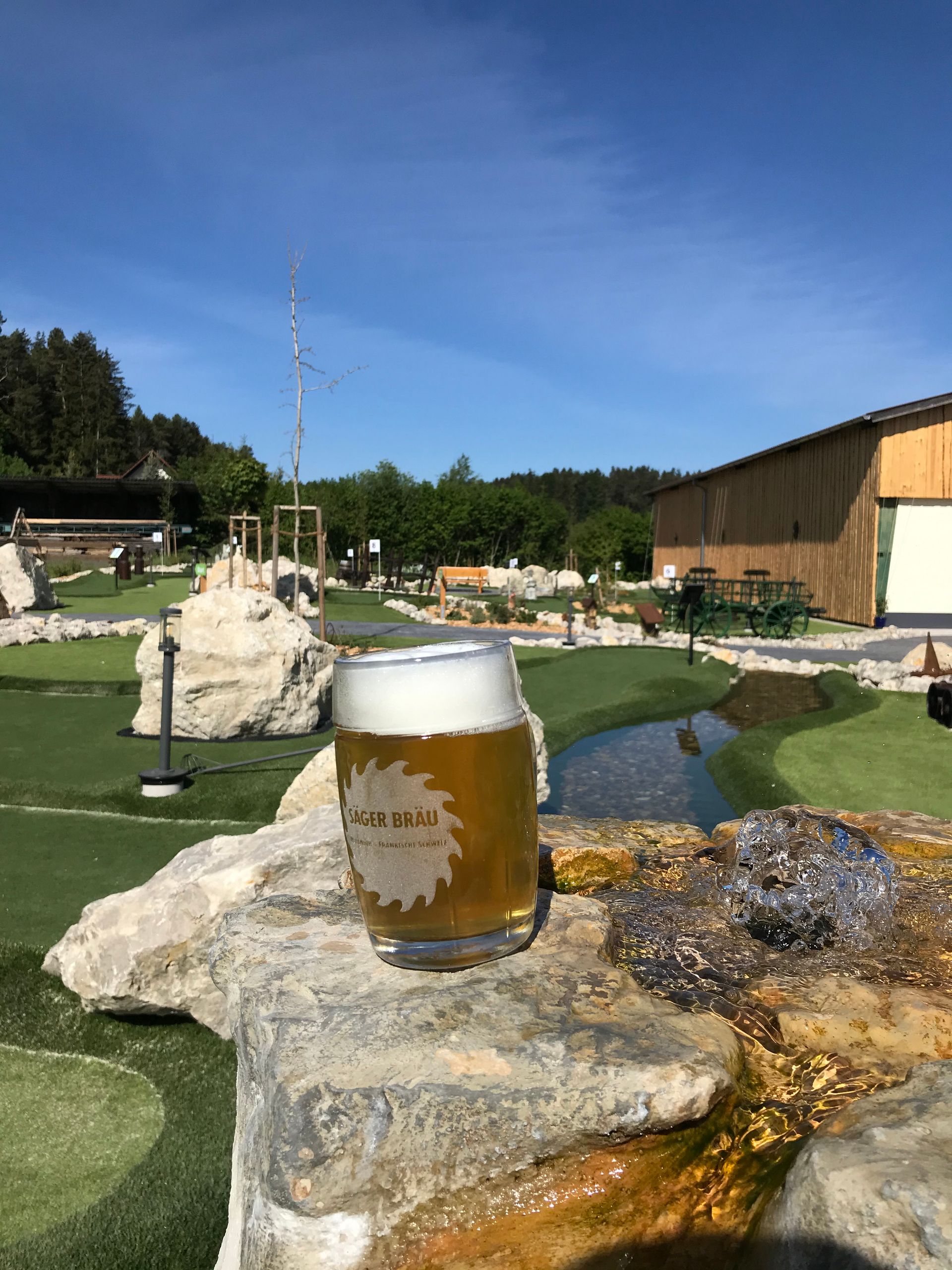 Eine Runde Abenteuergolf macht immer Spaß. Zum Abschluss ein kühles selbstgebrautes Bier oder auch ein Stück Kuchen oder Torte mit leckerem Kaffee oder Cappuccino können Sie direkt in unserem angrenzenden Biergarten genießen. Natürlich gibt es auch frisch zubereitete Speisen und auf die kleinen Besucher wartet im Sommer ein Eis.